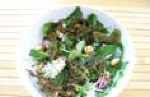 Was Du brauchst: Ich hab einfach alles was gerade wächst zusammengesammelt: Löwenzahnblätter, junge Erdbeerblätter, Brenessel, Bärlauchblüten, rote Kleeknospen, Gänseblümchen, junge Schafgarbeblätter - es wird ein bißchen bitter. Koste vielleicht vorher alles, was du sammelst. Olivenö [...]