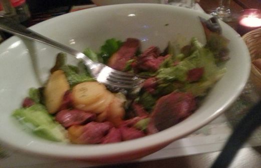 Französischer Landsalat bestehend aus Bratkartoffeln, Dörrfleisch und Blutwurst sowie einer Salat Variation. Eben alles was es auf dem Land gibt.