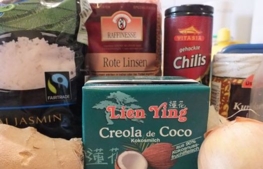 Zutaten ( 4 Portionen): 60 g Butter 2 TL Senfkörner (schwarz) 1 Zwiebel (gewürfelt) 2 Knoblauchzehen (gehackt) 1 EL Ingwer, gerieben 1 TL Kurkuma, gemahlen 1 TL geraspelte Chili (oder 2 kleine frische Schoten) 250g rote Linsen (Trocken) 1 L Wasser 300 ml Kokosmilch 1 TL Salz [...]