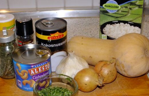 Den Kürbis vierteln, schälen, die Kerne m [...]