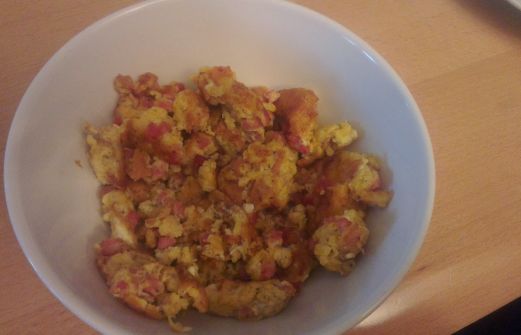 Eier aufschlagen, mit etwas Salz, Pfeffer und Paprikapulver vermengen.