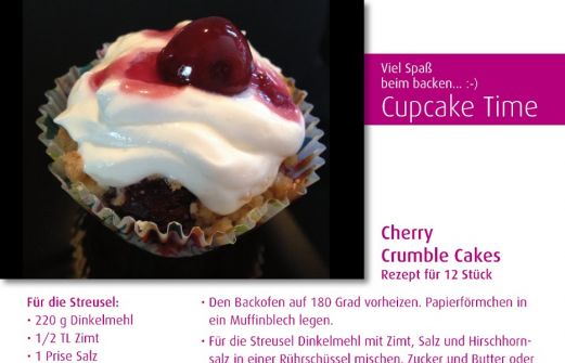 Cherry Crumble Cakes… :-) Sorte: Cupcakes mit Streuseln und Kirschen Topping: Magerquark mit Puderzucker und Schlagsahne Dieses leckere Rezept habe ich aus dem Buch Cup Cakes von Dr. Oetker. Die Buchvorstellung folgt bald! Ich kann schon mal sagen, dieses Rezept ist super lecker.. [...]