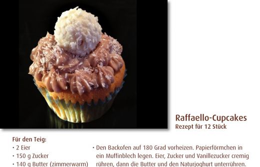 Raffaello, einfach nur le cker … :-) Sorte: Raffaello-Cupcakes Topping: Butter-Frischkäse-Creme, mit Kakaopulver Dekoration: Kokosflocken auf dem ganzen Cupcake verteilen Ausführliches Rezept könnt ihr ja oben finden Viel Spaß beim backen… ich kann nur sagen LECKER… :-)