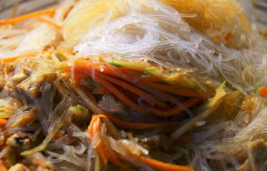 Fun-tschösa - so heißt ein koreanischer Glasnudelsalat . Und schon wieder geht es hier nicht um süd- oder nordkoreanische Küche , sondern um die Küche Korö Saram , der Koreanern aus Zentral Asien . Für den Salat braucht man unbedingt Rettich , schön wäre es den asiatischen grünen [...]