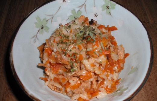 ... sprich, gekochter Reis vermischt mit in Mirin, Sake und Sojasoße gekochter Möhre und Shiitakepilzen. Auf das 'Rezept' gekommen bin ich durch den Sushiabend bei Mari, da hatte sie so etwas ähnliches bzw. das Gleiche gekocht. Mir schmeckt es sehr, sehr gut. Richtig schön würzig! Zutaten: [...]