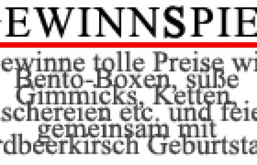 Auf dem Blog Erdbeerkirsch läuft schon seit einiger Zeit ein Gewinnspiel anlässlich des 2. Geburtstages. Und weil es deswegen soo tolle Sachen zu gewinnen gibt, habe ich auch gleich daran teilgenommen!^^ Dazu gehört, dass man gewisse Bedingungen erfüllen muss, u.a. auf dem eigenen Blog darüber [...]