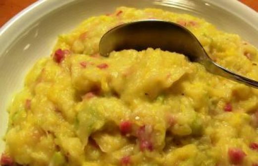 1 kleine Schalotte 1/2 Liter Salzwasser oder Gemüsebrühe 1 TL Olivenöl = 1.0 1 Päckchen Schinkenwü [...]