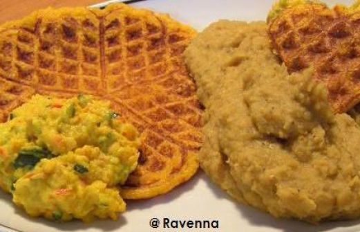 1 Schalotte 1 Knoblauchzehe 300g Hokkaido Kürbis 1 mittelgroße Kartoffel 100g Hafermilch/ Sojamilch/ Kuhmilch/ Buttermilch 50 g Dinkelvollkornmehl 2 gehäufte EL Stärke 1 Waffeleisen Die Zwiebel und den Knoblauch 3-5 Sek./ Stufe 5 zerkleinern Den Kürbis kurz mit heißem Wa [...]
