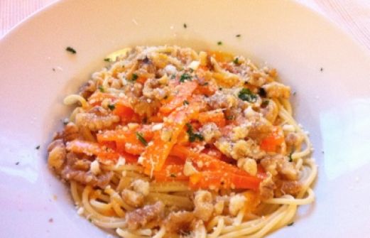 Leckere frische Pasta mit Möhren und Walnüssen und zusätzlich ein ordentlicher Schuss Weißwein übrig geblieben vom Wochenende ergibt dieses schnelle Gericht: Pasta (hier Spaghetti) nach Packungsanweisung zubereiten. Derweil Zwiebeln schneiden und in kleine Würfel vierteln in einem Topf mit O [...]
