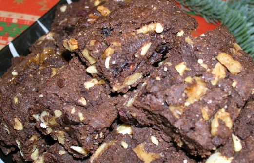 Zutaten für ein großes Blech: 100g Walnusskerne 100g Cashewkerne, ungesalzen 250g getrocknete Cranberries 250g weiche Karamellpralinen 700g Zartbitterschokolade 400g Butter 500g Mehl 4 Prisen Salz 2 TL Lebkuchengewürz 4 Eier 400g Zucker Backpa [...]