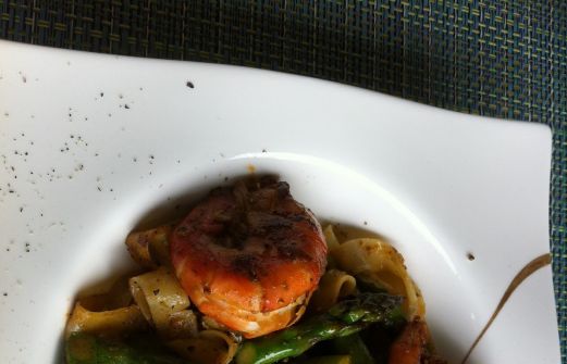 Heute mal die einfache Küche ZUTATEN FÜR ZWEI PERSONEN 150 gramm Fetuccini 150 gramm grüner Spargel ( kann auch mit anderem Gemüse gemacht werden ) 6 Riesengarnelen ( können natürlich auch mehr sein) eine kleine Zwiebel eine Knoblauchzehe Salz Pfeffer Olivenöl ZUBEREIT [...]