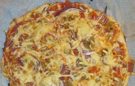 Mein Mann ist erkaeltet und hatte sich heute Suppe gewuenscht.Normalerweise ist ja Huehnersuppe ein bekanntes Hausmittel,er wollte aber Rindfleischsuppe. Ich hatte keine Lust auf Suppe und so kam ich auf die Idee,mir Pizza zu machen.Mit Sicherheit waeren meine Kinder am liebsten auch hier [...]
