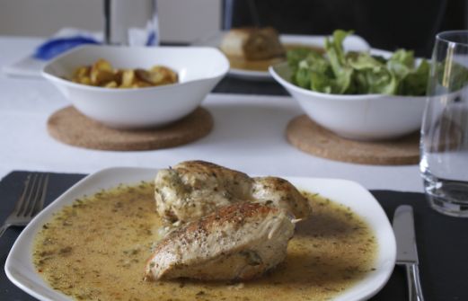 Das mach' ich... kochen. Mir sind von gestern noch Hühnerbrüstchen übrig geblieben, die unbedingt verkocht werden mussten. Und weil keine Zeit zum Einkaufen war, hab ich nach einem kurzen einem Kühlschrank-Check folgendes gekocht: Zutaten: 1 Mozzarella 3 Hühnerbrüste Kräuter der Pr [...]