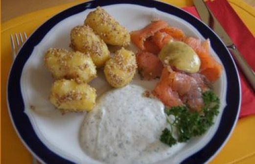 Zutaten für Personen Rezept mit Bild: Sesamdrillinge mit Lachs, Senf-Honig-Sauce mit Dill und Kräutercreme Bild einstellen 500 g Drillinge 1 TL Salz 1 ½ EL Butter 3 EL Sesam 2 kräftige Pris [...]