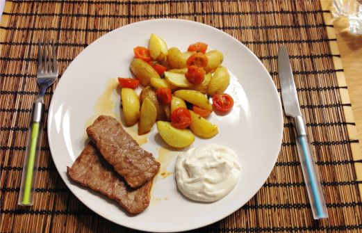 Heute habe ich mir Salbeikartoffeln gemacht, da ich aber Lust auf Fleisch hatte, kamen noch zwei Kalbsplätzchen dazu. Salbeikartoffeln mit Kirschtomaten und einem Quarkdip und Kalbsplätzchen Rezept Salbeikartoffeln mit Kirschtomaten Zutaten für 2 Personen: - 500g Kartoffeln [...]