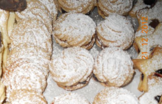 Haselnuss-Zimt Rosetten Zutaten: 185 g Butter 60 g Zucker, braun 60 g Zucker 1 Pck Vanillezucker 2 TL Zimt 2 Ei(er) 225 g Mehl 1 TL Backpulver 90 g Haselnüsse , gemahlen Füllung: Nuss Nougat Creme und / oder Heidelbeer Marmelade Zubereitung: [...]