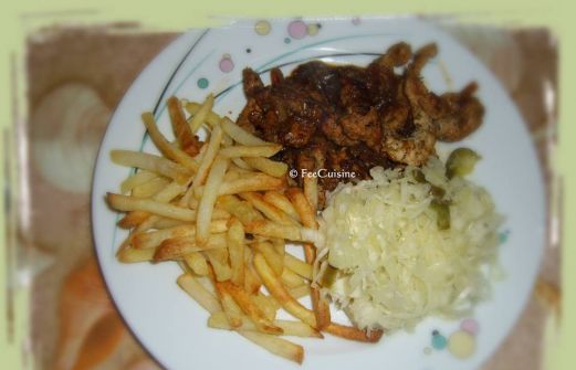400 g mageres Geschnetzeltes vom Schwein ( oder Schweineschnitzel selber schneiden ) 400 g Gemüsezwiebel ( Metzgerzwiebel ) 2 Knoblauchzehen Salz ca 1 TL 1 1/ 2 EL Olivenöl jeweils 1 TL Thymian - Oregano - schwarzer Pfeffer , Paprika Knoblauch schälen und pressen Aus Öl , den Gewürzen [...]