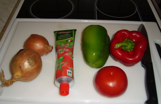 Du benötigst folgende Zutaten Paprika ( nach belieben ) / Zwiebel / Tomaten / Tomatenmark / Knoblauch Gewürzgurke / Wasser oder Brühe / Salz / Paprikapulver / Chilliflocken ( oder frische Chilischoten ) Curry / Öl / Zucker Putze das Gemüse und schäle die Zwiebeln. Gib zunächst einen Schuß Öl in [...]