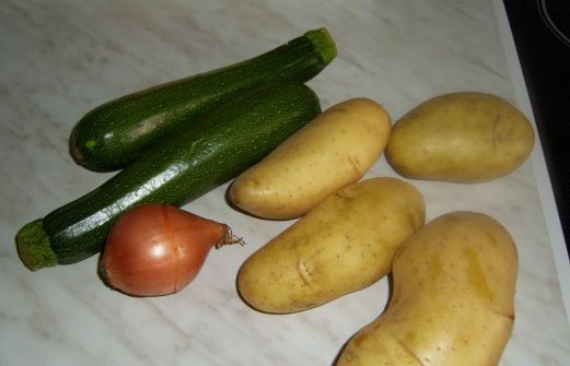 2 Zucchini ,4 große Kartoffeln,1- 2 Zwiebeln, Salz , Pfeffer,Rosm [...]