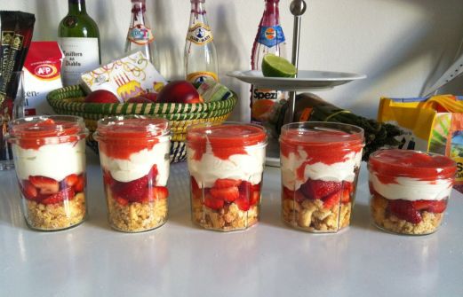 Zutaten: (für ca. 5 Gläser, kann man natürlich variieren) eine Schale Erdbeeren ein paar Löffelbiscuits (vlt so 4-6) ein Esslöffel Butter einen Becher Sahne eine kl. Pck. Quark ein Pck. Vanillinzucker ein wenig Puderzucker je nach dem ein Pck. Sahnesteif eine Limette/ bzw. ein bissc [...]