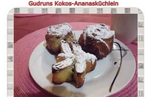Zutaten für Personen Rezept mit Bild: Kuchen: Kokos-Ananasküchlein Bild einstellen 150 Gr. Dinkelmehl 100 gr. Kokosflocken 150 Gr. Zucker 100 Gr. Margarine 250 ml Milch fettarm 50 [...]