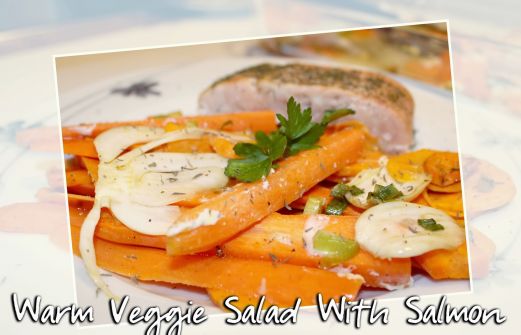 heute stelle ich euch ein Rezept vor, das ich mir aus einer Zeitschrift rausgesucht habe. Ein warmer Gemüse Salat den ich mit gedünsteten Lachs aufgepeppt habe.