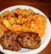 pro Person Rezept für 4 Personen: 550 g Hähnchenbrustfilet ohne Haut 1 gelbe Paprika 1 Zwiebel 4 Cornichons 50 g Magerquark 20 g Paniermehl 1 1/2 TL Salz frisch gemahlener Pfeffer einige Blätter Majoran und Zitronenmelisse, fein gehackt [...]
