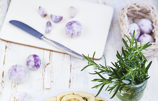 H eute möchte ich Euch mein Sommerliches Knoblauchbrot in Schneckenform, mit Thai-Spargel und lila Ackerknoblauch vorstellen. Ackerknoblauch oder auch Sommerknoblauch genannt, gehört zur Familie