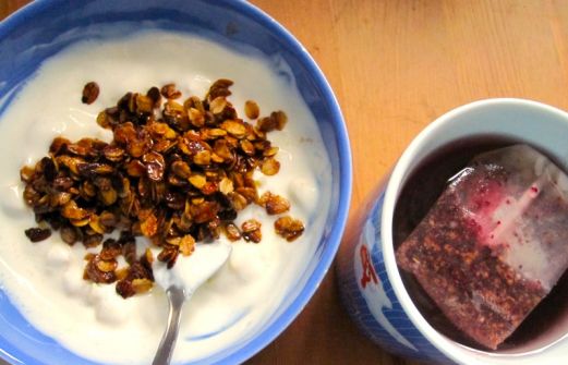 Letztens habe ein lecker klingendes Rezept für ein Frühstücksjoghurt gelesen. Man nehmen Naturjoghurt, füge eine oder mehrere beliebige Sorte/n Frucht hinzu und als Topping gibt es in Butter und Zucker angebratene Haferflocken, die beim Braten schön karamellisieren. Zuletzt mit etwas Zimt bestr [...]
