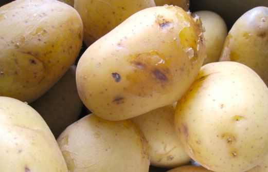 Man nehme: Kartoffeln, mit Schale gekocht, pellen und in Scheiben schneiden.
