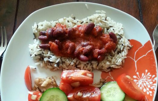 Heute gibt es "Rote Bohnen in Tomaten mit Tomaten-Avocado-Salat" (abweichend vom Titel gab es allerdings heute Gurke statt Avocado, w [...]