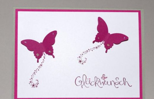 Eine Geburtstagskarte für meinen Zwerg habe ich gestaltet und da sie gerade unheimlich auf Schmetterling steht, habe ich da etwas passendes gefunden: Stampin Up: Stanze eleganter Schmetterling Farbkarton himbeerrot Ausserdem hat sie sich eine Pfannkuchen- (bei uns heißt [...]