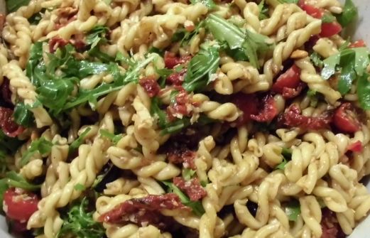 noch ist das Wetter ja sehr angenehm und man kann noch wunderbar mit der Familie oder auch Freunden draußen sitzen. Und natürlich grillen. Neben selbsteingelegtem Fleisch, Bratwürsten und soweiter, gab es diesen Nudelsalat.