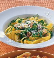 Fettuccine mit Carpaccio von der Sommertrüffel Zutaten 200 Gramm Fettuccine (4 - 5 mm breit) Campofilone Pasta oder Toskana Pasta oder selbst gemacht Meersalz ----- 20 Gramm mild gesalzene Fassbutter (in kleine Stücken) 1 EL abgetropftes Olivenöl vom Trüffelcarpaccio 200 ml bester Ge [...]