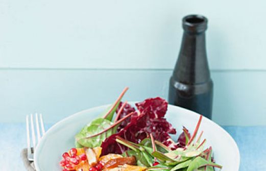 Radicchiosalat mit Clementinen Zutaten 1 kleiner Grantatapfel 4 Clementinen (ca. 350 g) 30 g getrocknete Datteln 80 g Radicchio 50 g rote Mangoldblätter Salz 1 TL Akazienhonig 1 TL Dijonsenf 2 TL Sherryessig 1 EL Walnussöl schwarzer Pfeffer aus der Mühle 1 kleiner [...]