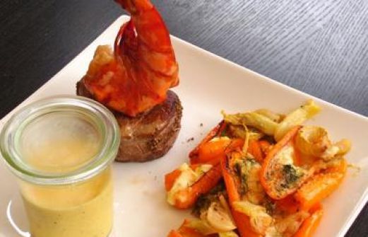 Zutaten für Personen Rezept mit Bild: Surf 'n' Turf Bild einstellen Surf 'n' Turf: 2 Rinderfiletmedallions à ca 180g 2 Riesengarnelenschwänze Wildfang Langpfeffer und Kubebenpfeffer 1 Knolle j [...]