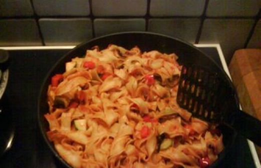 Zutaten für Personen Rezept mit Bild: Bratnudeln Bild einstellen 500 g Bandnudeln 1 Stück Paprika rot 1 Stück Paprika gelb 3 Stück Champignons frisch 0.25 Stück Zucchini 1 EL Pflanzenöl Heinz To [...]