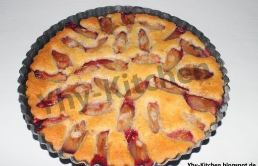 Man kann beliebige Früchte nehmen, z.B Kirschen. Wenn man nicht den säuerlichen Geschmack von Pflaumen mag, kann man Pfirsiche nehmen. Ich habe eine kleine Form genommen und es ist schwer die Nachspeise wie ein Kuchen zu schneiden (e [...]