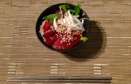 Wenn man dieses leckere Gericht in Japan im Restaurant bestellen möchte heißt dies Maguro no tsukedon! Maguro heißt Thunfisch auf japanisch!