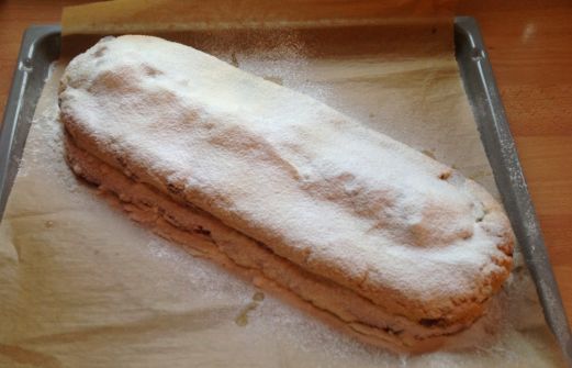 In unserer Familie gehört ein Christstollen zum Adventskaffee. Normalerweise backe ich immer Ende Oktober, in diesem Jahr habe ich es erst heute geschafft. Es heißt ja, je länger der Stollen vor dem Anschnitt lagert, desto saftiger ist er.