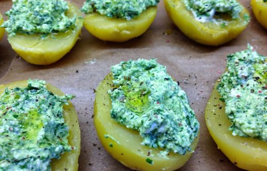 Das geht ganz einfach und macht sich immer gut für Gäste, beim Grillen, als Tapas oder einfach mal als Vorspeise... Zutaten: 8-10 große Kartoffeln etwas Olivenöl Petersilie, Thymian, Majoran, Schnittlauch 200 g Manouri (Schafsmolkekäse) 4 Esslöffel Schmand 150 g Fris [...]