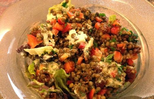 Zutaten: 200 g rote oder braune Linsen (wenn es schnell gehen soll in Bioqualität aus dem Glas, ansonsten gekocht - das dauert auch nur 15 Minuten, also ;-)) 1 rote Paprika 1 Ziegenfrischkäse (hatte einen in rotem Pfeffer eingelegten, sehr lecker) 10 EL Olivenöl 3 EL Bals [...]