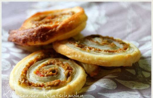 Eine neue Blätterteig-Schnecken-Variation musste her und da mich Oliven zur Zeit immer noch sehr an die Algarve erinnern, gesellten sich diese zu wunderbar aromatischem Parmesan . Lecker.