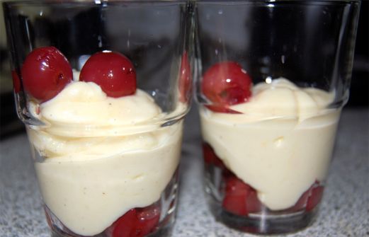 Sauerkirschen abtropfen lassen. Vanillejoghurt mit dem Zucker und Salz, Cayennepfeffer und fein geha [...]