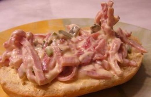 Zutaten für Personen Rezept mit Bild: Fleischsalat Bild einstellen 100 Gramm Jagdwurst (Süddeutsche und Norddeutsche) 20 Gramm Salami ungarische Art 1 Stück Gewürzgurke 1 Prise Salz und Pfeffer 100 G [...]
