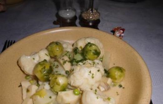 Zutaten für Personen Rezept mit Bild: Leipziger Allerlei "Grün-Weiß" Bild einstellen 1 Kohlrabi 1 kleiner Blumenkohl 200 g Spargel weiß frisch 100 g Rosenkohl tiefgefroren 50 g Erbsen grün tiefgefroren [...]