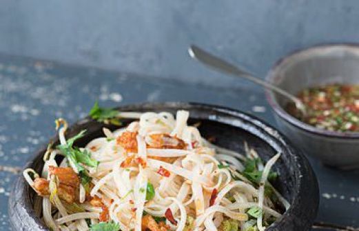 Reisnudeln mit scharfem Tofu Zutaten 200 g Tofu 2 EL Sojasauce 1 EL Sesamöl 1 TL Sambal Oelek 150 g mittelbreite Reisnudeln Salz 2 Frühlingszwiebeln 50 g Sojasprossen 2 EL Öl 2 TL Korianderblättchen 200 g Tofu , 2 EL Sojasauce , 1 EL Sesamöl , 1 TL Sam [...]