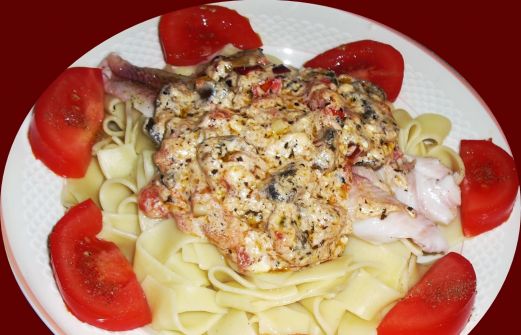 Auf Bandnudeln. Mal wieder so eine Idee von mir. Mir zumindest schmeckte es sehr gut. Für 1 Person 1 Forellenfilet geräuchert ohne Gräten 2 Rispen-Tomaten 2 grosse Champignons frisch 1 grosse Knoblauchz [...]