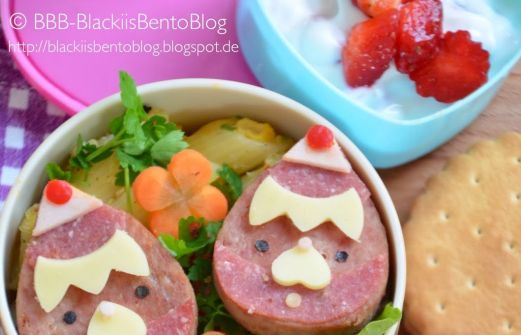 Heute brauchten wir wieder Wegzehrung für den Spielplatz besuch. Die zwei Wichtel sind aus Frühstücksfleisch, Salami, Mortadella, Paprika, Nori und Käse. Sie liegen auf Nudel-Gemüse Auflauf. Dazu gab es Mini Wiener, Brokkoli, Zuckerschoten, Cocktailtomate, Ei, Trauben, Erdbeere und Mandarine. A [...]