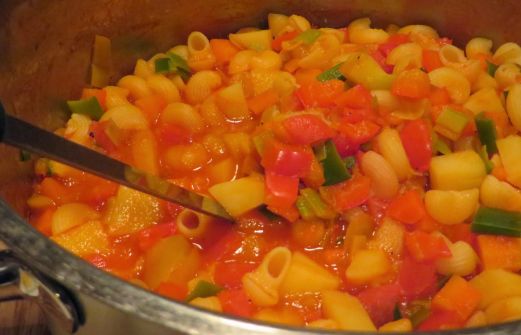 Gestern war es hier regnerisch, kalt und ungemütlich. Was passt da besser, als eine dicke italienische Suppe. Wärmt schön und ist super lecker. Für die Minestrone braucht man: 1-2 Zwiebeln 4-5 Karotten 4-5 Kartoffeln 2-3 rote und gelbe Paprika 1 Stange Lauch (oder wa [...]